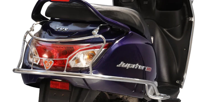 India’s First Nickel and Chrome Plated Rust Proof Stainless Steel Scooter Safety Guard for TVS Jupiter 125 Protect your TVS Jupiter 125 with heavy-duty stainless steel. It will protect your scooter from accident, scratch, and damage.